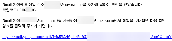 연결한 메일로 들어가서 확인해보면 이런 메일이 들어와 있습니다. 중간에 확인코드를 입력하셔도 되고, 링크를 클릭하셔도 됩니다. 아마 대부분 링크를 찍어서 처리하시겠죠^^