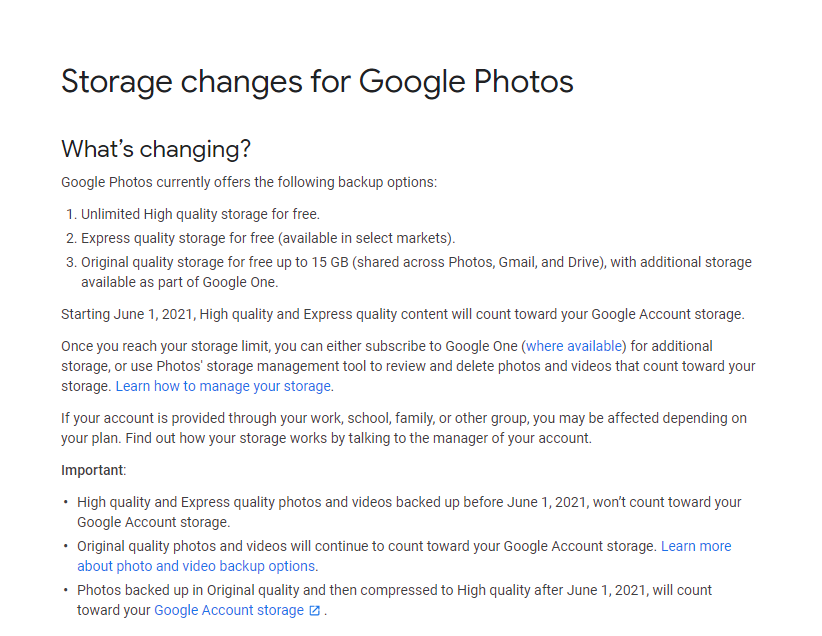 무료로 계속 사용한다고 해도, 기존에 백업된 용량을 구글 원의 저장용량에 포함시키는 만행을 저지른 것은 아니기 때문에 구글 원을 사용하지 않았다면 15기가까지는 사진 백업의 허용량이 남아있어서 이주할 다른 서비스를 찾기전까지 꽤 유예기간이 있는 편입니다.