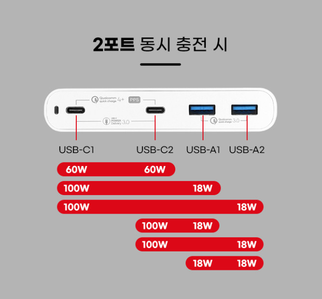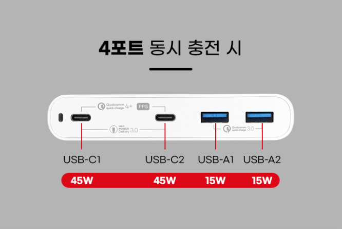 RB-PD120PPS가 내새우는 특장점은 위와 같습니다. 만... 사실 저게 뭔소린지 바로 직관적으로 이해하기가 어려운 것도 사실입니다. 최대 출력과 4포트는 이해가 되는데 4포트 아래 2C+2A는 무엇인지...