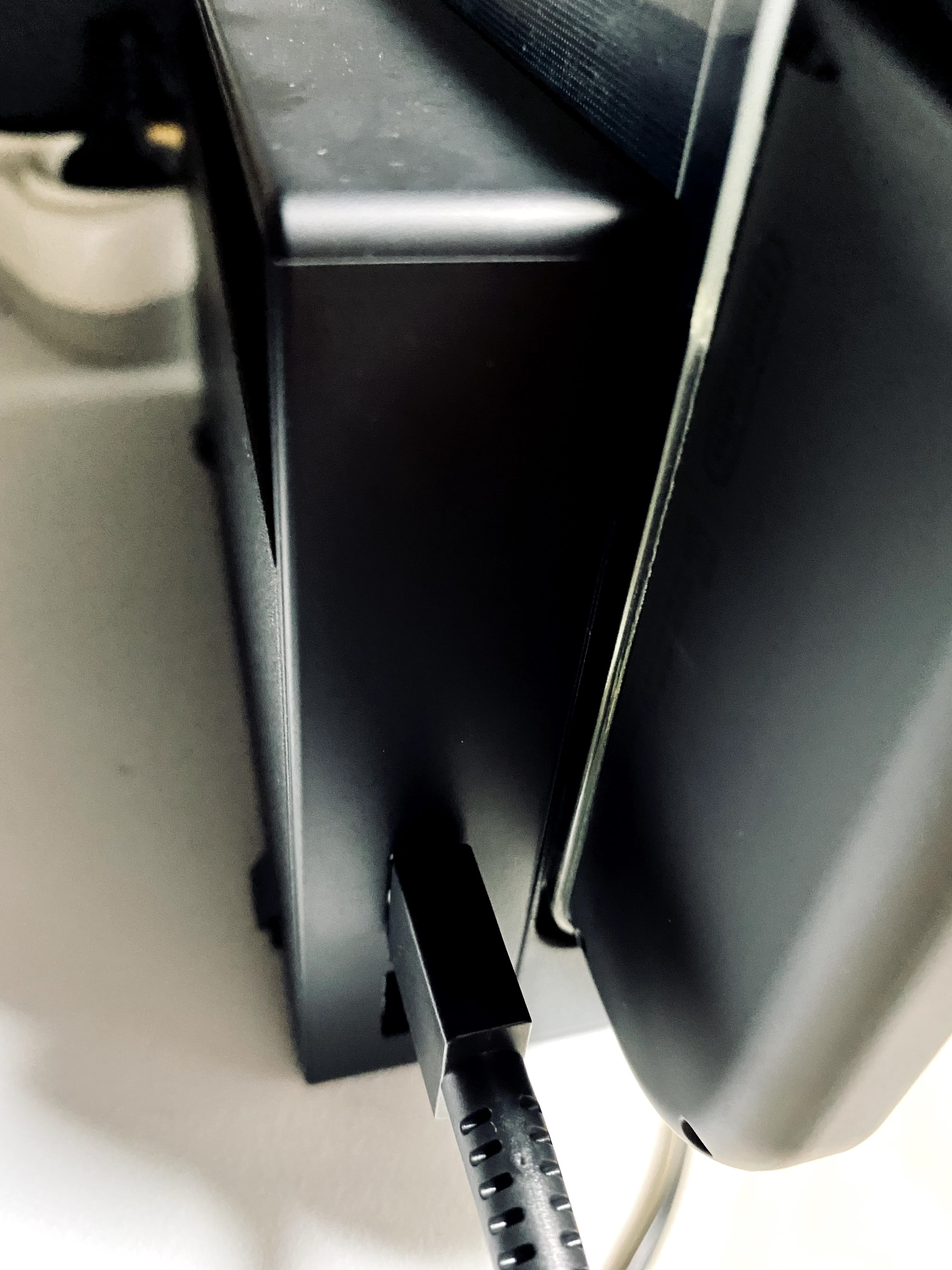 2. 동봉된 USB 케이블을 거치대 왼쪽 측면에 있는 포트에 연결하고 반대쪽을 프로콘에 이어준다.